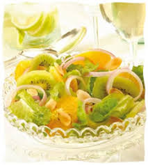 Kiwi fruit has good level of dietary fiber and papaya has antioxidant properties. The most nutritious kiwi salad is flavoured with sesame seeds and mildly spiced. Spinach, cashews and cherries used in this salad add a different taste along with the fruits. Lime adds a sour tinge to the salad.